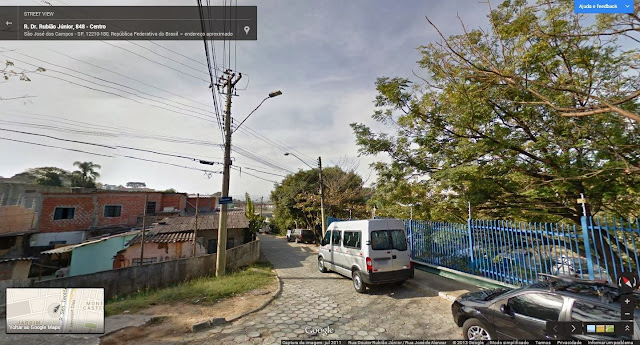 Terreno da FUNDHAS, "continuação" da R. José de Alencar. Há até poucos anos, não havia a quadra dessa instituição, e era ainda mais evidente o leito: